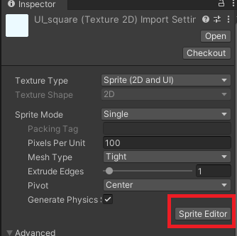 에디터 상에서 해당 이미지 파일로 가서 Sprite Editor 클릭